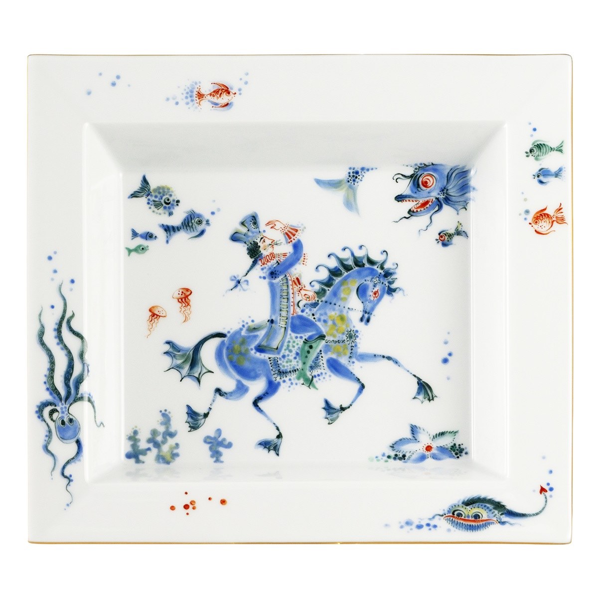 異彩を放っている絵柄は「海底を馬で散歩している男爵」を描いたもので、海の中の魚たちが楽しそうにそれを見守っている姿も微笑ましいです。